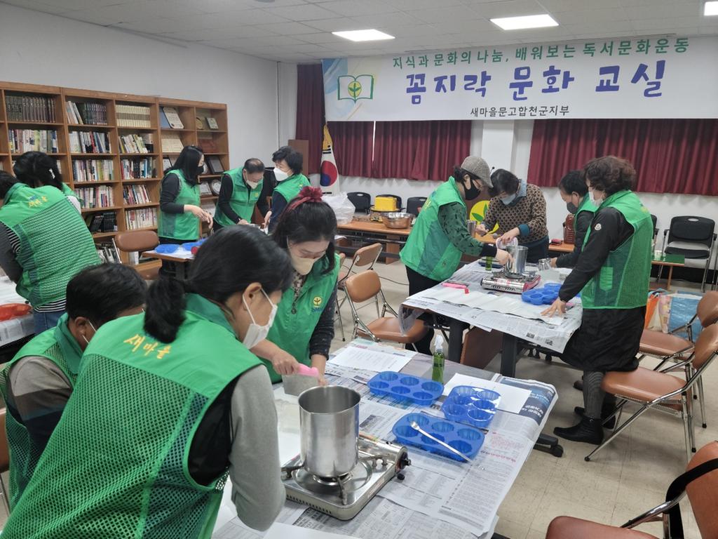새마을문고 합천군지부는 지난 14일 새마을회관 회의실에서 마정출 새마을문고분회장 및 문고회원, 문고이용자 20여 명이 참여한 가운데 ‘꼼지락 문화교실’을 열었다.