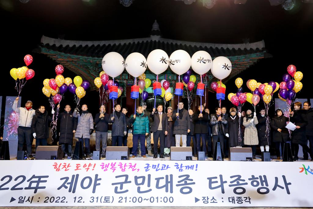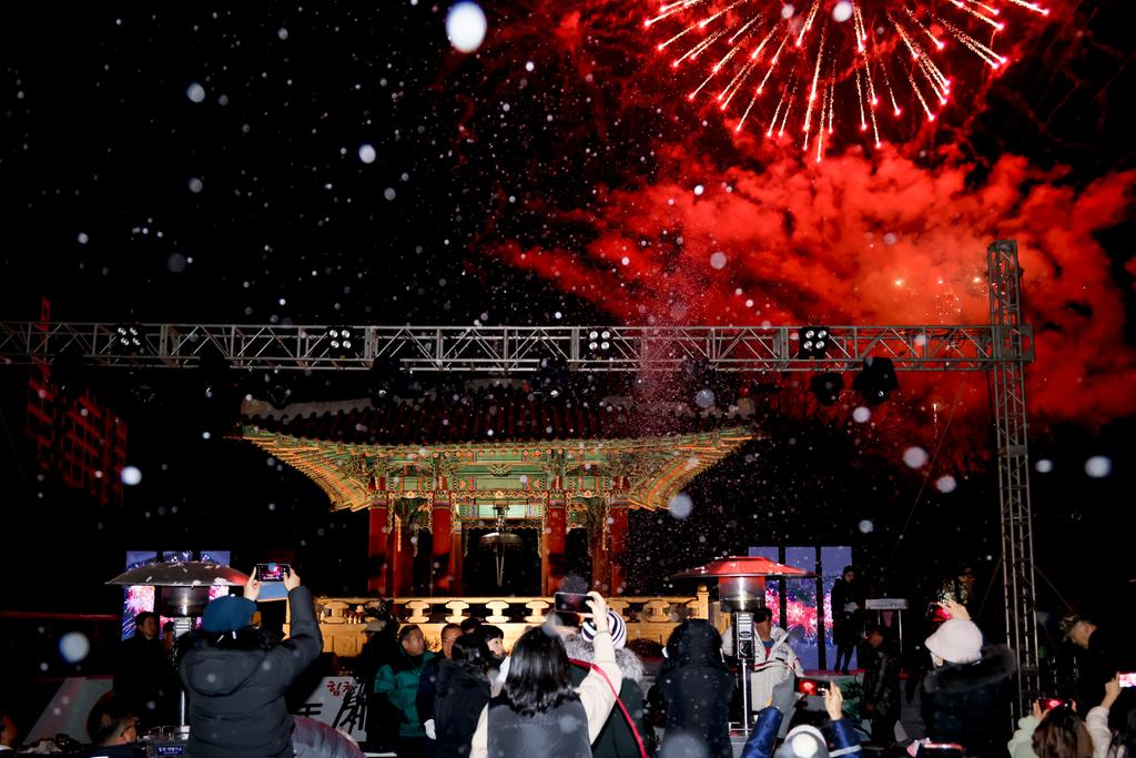 본행사의 클라이맥스는 군민들과 함께하는 새해 카운트다운에 이은 24시 정각 군민대종 타종으로 33타 타종으로 희망찬 새해의 시작을 알렸다.