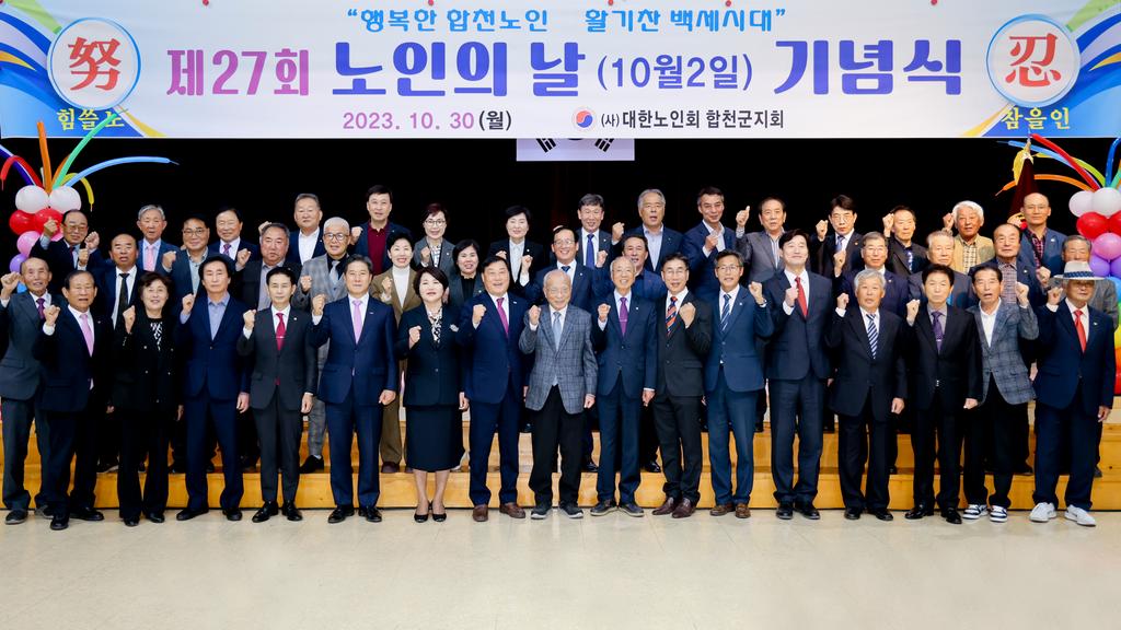 합천군(군수 김윤철)은 10월 경로의 달을 맞아 (사)대한노인회 합천군지회(지회장 이천종) 주관으로 30일 합천문화예술회관에서 ‘제27회 노인의 날 기념식’을 개최했다.