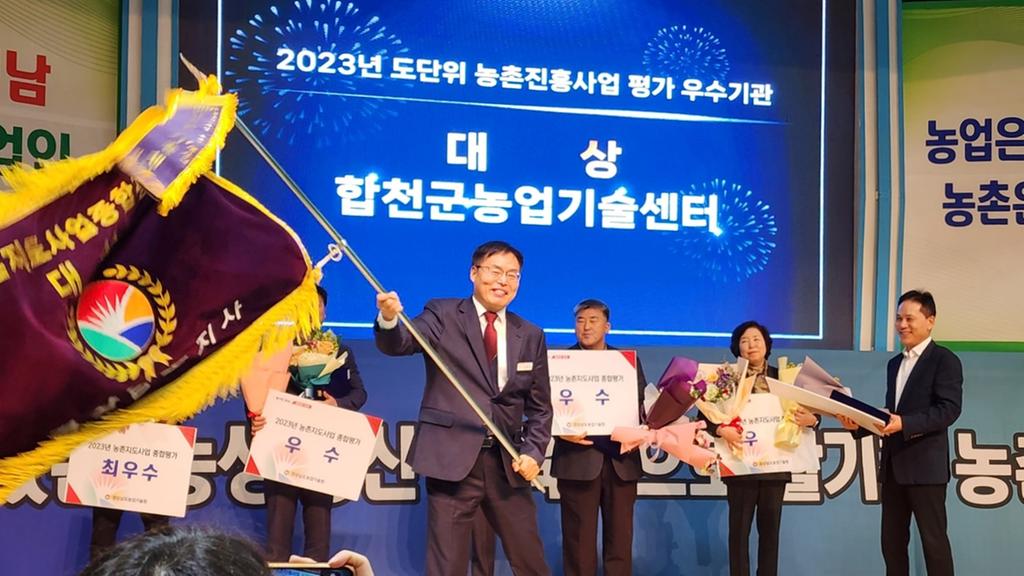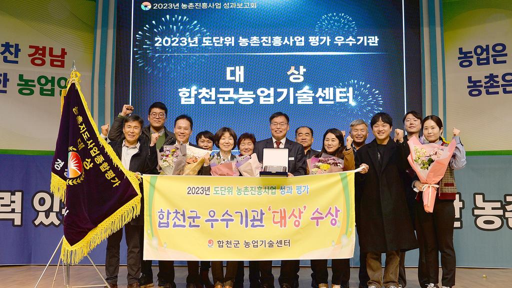 합천군(군수 김윤철)은 지난 15일 경상남도에서 주관한 2023년도 농촌진흥사업 평가에서 도단위 최우수기관(대상)으로 선정돼 도지사 표창패와 대상기를 전수 받았다.