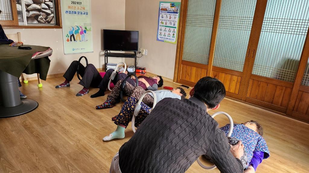 2024년도 신규 사업인 소근육 관절강화 운동교실은 전문인력이 마을회관, 경로당 등에 방문해 어르신들의 관절 가동범위 등을 확인한 후 루프밴드, 필라테스링, 짐스틱 등 소도구를 활용한 부위별 근육 강화 운동을 교육한다.