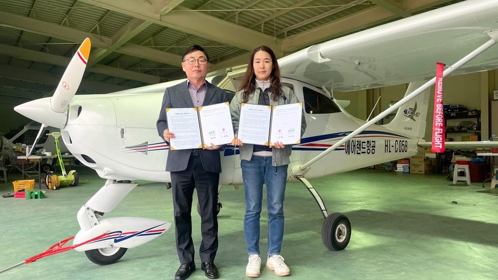이번 협약은 군에서 위탁운영 중인 ㈜에어랜드 보유 항공기로 상공에서 산불을 감시해 산불발생 제로화 달성과 에어랜드항공 운영 활성화를 위해 체결됐다.