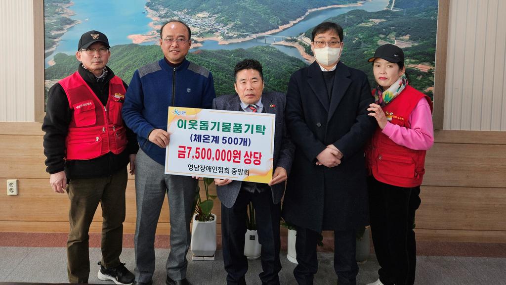 영남장애인협회 중앙회(회장 이기봉)는 28일 봉산면사무소(면장 박재홍)를 방문해 이웃돕기성품(체온계 500개)을 기탁했다.