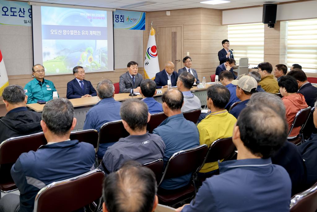 이날 설명회는 오도산 양수발전소 홍보 및 건설사업 동영상을 시청하고 사업설명, 질의응답의 순서로 주민들이 궁금해하는 사항을 상세히 설명하는 소통의 자리를 마련했다.