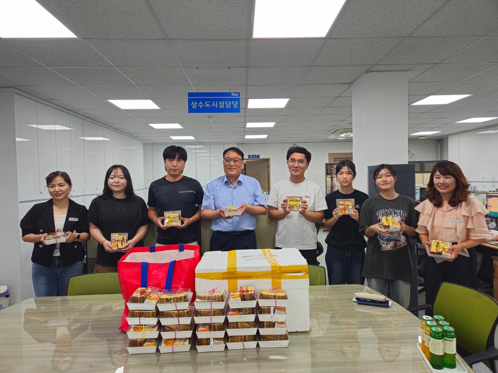 또한, 이날 청소년 3명이 대표로 건설교통과 사무실 및 상하수도과 사무실을 방문해 제작한 샌드위치를 도로보수원과 검침원분들에게 감사의 뜻을 담아 직접 전달했다.