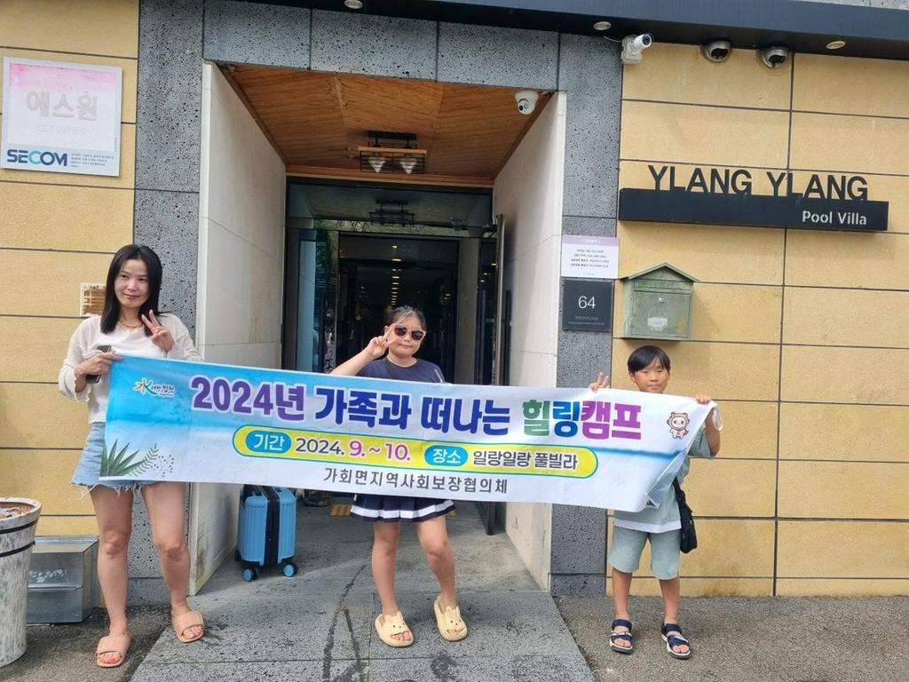 합천군 가회면지역사회보장협의체(공공위원장 조홍숙, 민간위원장 권윤근)는 2024년도 경상남도 공모사업으로 선정된 특화사업 ‘가족과 떠나는 힐링캠프’를 9월부터 10월까지 추진하고 있다. 이 사업은 총 500만 원의 지원을 받아 지역 내 아동센터 아동들의 가족을 매주 한 가족씩 1박 2일 여행을 보내는 프로그램이다.