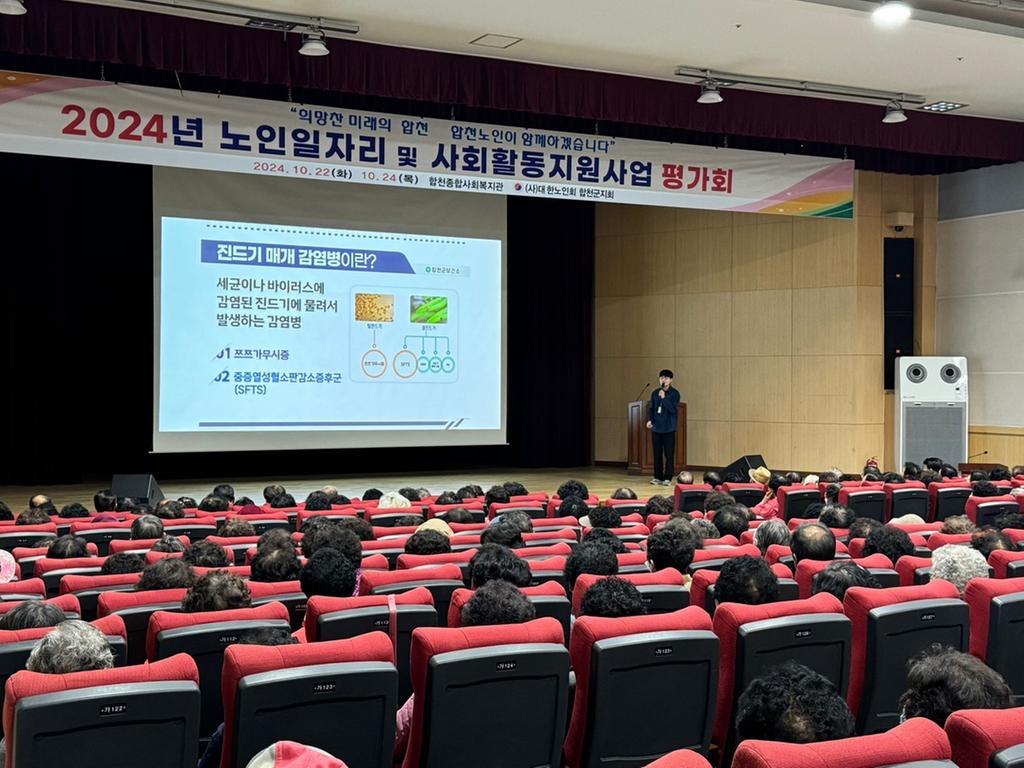 이번 교육은 진드기 매개 감염병이 집중 발생하는 가을 추수철을 맞아 대한노인회 합천군지회 노인일자리 및 사회활동지원사업 평가회와 연계하여 종합사회복지관에서 22일과 24일에 각 300명을 나누어 진행됐으며, 23일에는 산림과 일자리 참여자 안전교육과 연계해 농업기술센터에서 이루어졌다.