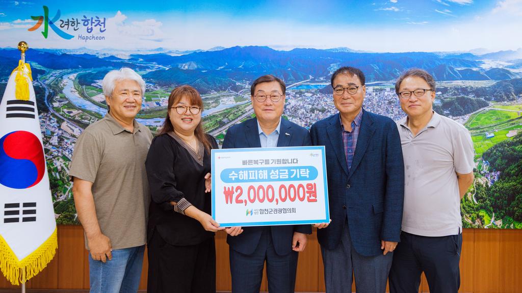 사단법인 합천군관광협의회(회장 김해식)는 8월 4일, 집중호우로 큰 피해를 입은 합천군민을 돕기 위해 성금 200만원을 합천군에 기탁했다.