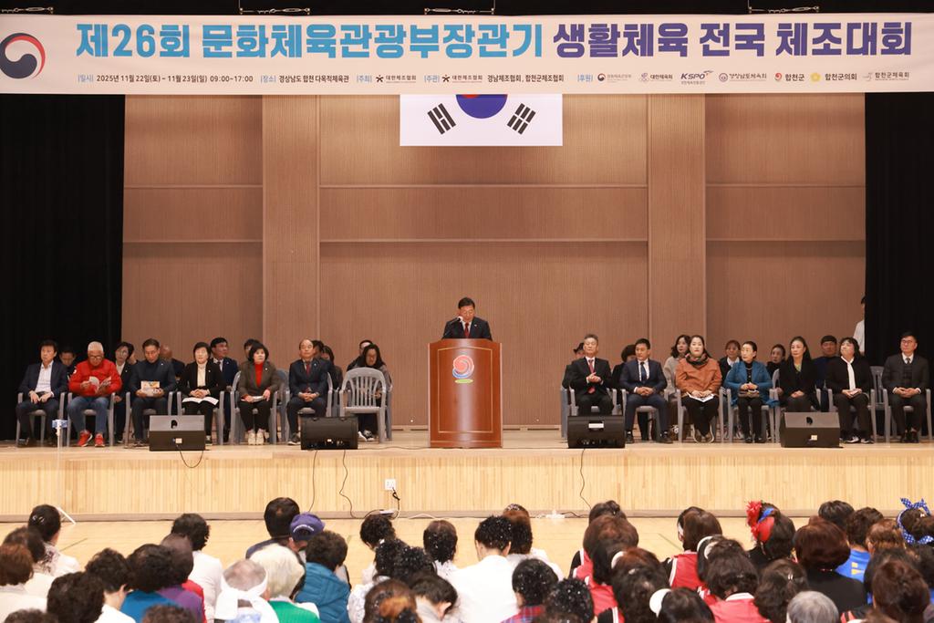 합천군(군수 김윤철)은 11월 22일부터 23일까지 양일간 합천다목적체육관에서 열린 ‘제26회 문화체육관광부장관기 생활체육 전국체조대회’가 성황리에 마무리되었다고 밝혔다.