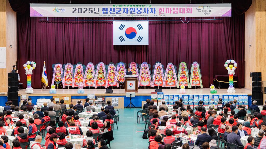 합천군자원봉사협의회(회장 김용철)는 25일 합천체육관에서 김윤철 합천군수, 정봉훈 군의장을 비롯한 기관·사회단체장과 자원봉사협의회 회원 등 300여 명이 참석한 가운데 ‘2025년 합천군 자원봉사자 한마음대회’를 개최했다.