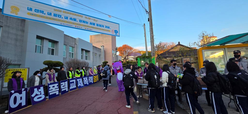 이번 캠페인은 합천여자중학교와 합천여자고등학교 주변에서 등굣길 학생, 교직원, 군민을 대상으로 진행됐으며, 합천군을 비롯해 합천경찰서, 합천가정상담센터, 합천군여성단체협의회, 합천군지역사회보장협의체 여성아동청소년분과, 여성친화도시 군민참여단 등 10여개 유관기관이 함께 참여하였다.