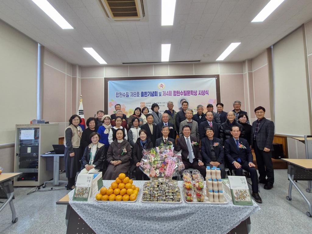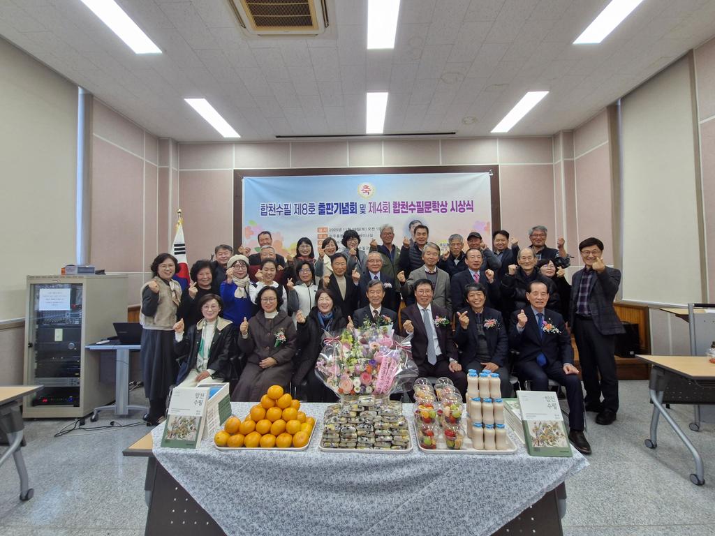 합천수필문학회는 11월 29일 이주홍어린이문학관 세미나실에서 문학회 및 합천군 관계자 등 40여 명이 참석한 가운데 제 8회 『합천수필』 출판기념식 및 제 4회 합천수필문학상 수상식을 개최했다.