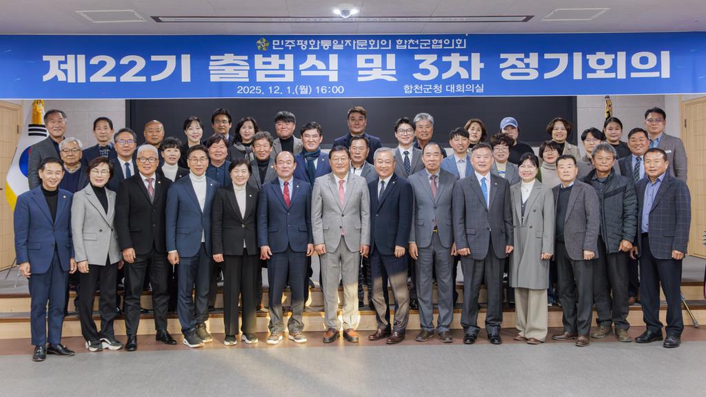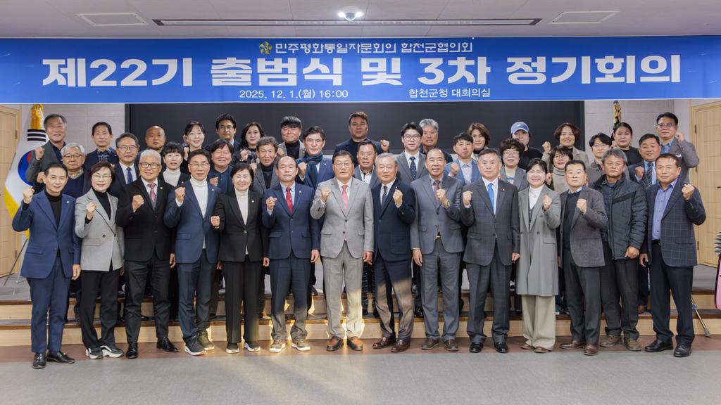 민주평화통일자문회의 합천군협의회(회장 정병균)는 12월 1일(월) 오후 4시 합천군청 대회의실에서 합천군수, 자문위원 등 50여명이 참석한 가운데 ‘제22기 출범식 및 2025년 3차 정기회의를 개최했다.