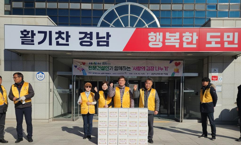 합천군 전문건설협의회(회장 김찬수)는 지난 4일 합천군(군수 김윤철)을 방문하여 취약계층의 따뜻한 겨울나기 지원을 위해 5kg 김장김치 26박스를 기탁했다.