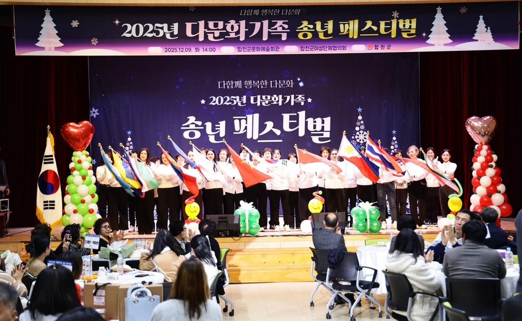 합천군여성단체협의회(회장 이정임)는 9일 합천군문화예술회관 대공연장에서 다문화가족 등 180여명이 참석한 가운데 ‘다함께 행복한 다문화’라는 주제로 2025년 다문화가족 송년페스티벌을 개최했다.