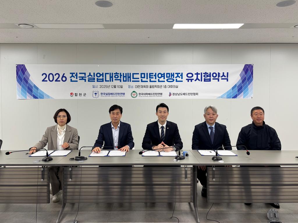 합천군은 12월 10일 ‘2026 전국 실업·대학배드민턴연맹전’ 유치 협약을 체결했다고 밝혔다.