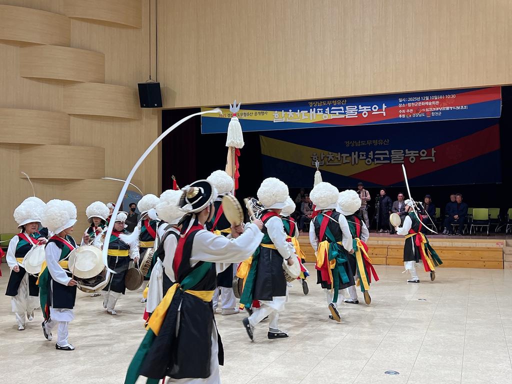 (사)합천대평군물농악보존회(이사장 김성만)는 12월 10일 합천군문화예술회관에서 경상남도 무형유산 제47호 ‘합천대평군물농악’ 공개행사를 성황리에 개최했다. 이날 행사에는 100여 명의 관람객이 참석해 전통 농악의 흥겨운 울림을 함께했다.