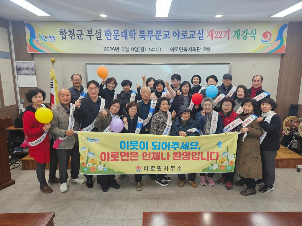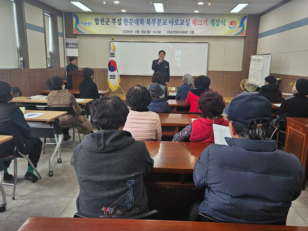 합천군 부설 한문대학 제22기 북부분교 야로교실은 9일 야로면 복지회관 2층 소강의실에서 개강식을 개최하고 본격적인 운영에 들어간다고 밝혔다.