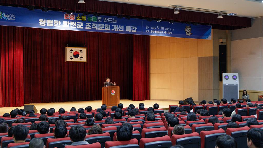 이어, 종합사회복지관 대강당에서 열린 특강에는 300여 명의 직원이 참석했으며, 존중·소통·능률로 만드는 청렴한 조직문화를 주제로 진행됐다. 특강에서는 직급별 간담회를 통해 제시된 의견을 중심으로 합천군에서 실천할 수 있는 조직문화 개선 방안이 제시되었다.