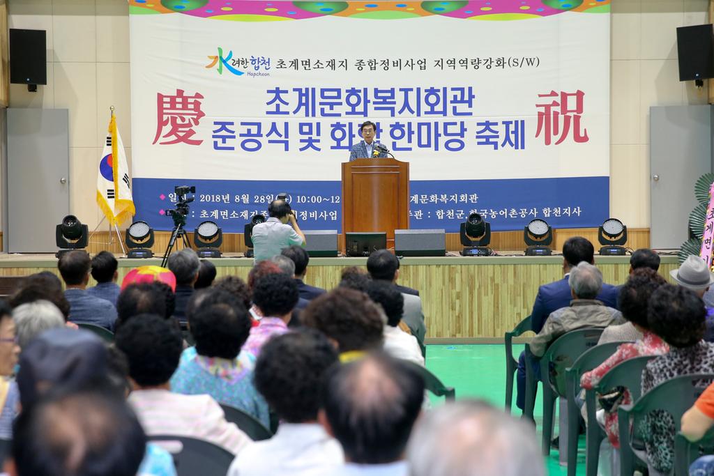이어서 정판용 합천부군수는 “주민들의 6년간의 땀과 노력이 베어 나온 결실이자 초계면뿐만 아니라 합천 동부지역에서 주민들의 문화복지 및 생활체육의 중추적인 역할을 할 것으로 기대한다. 면민 여러분께서도 ‘내가 이 시설의 주인’이라는 주인의식을 가지고 많이 아끼고 널리 홍보해주시길 바란다.”라고 당부했다.