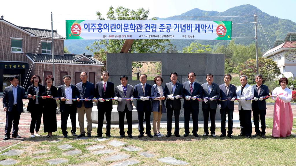 합천군은 지난 22일 이주홍 어린이문학관 2층 세미나실에서 문준희 합천군수 와 김윤철 도의원이 참석한 가운데 향파 이주홍선생기념사업회 2018년도 결산총회 및 회장 이․취임식 행사를 가졌다.