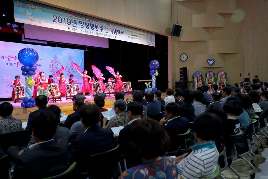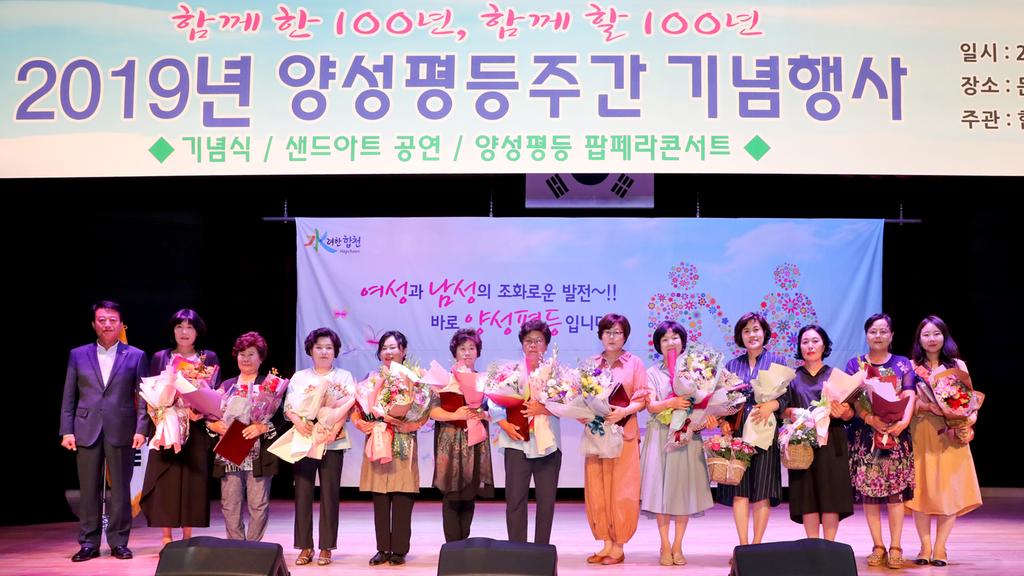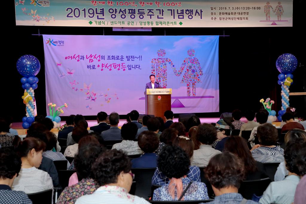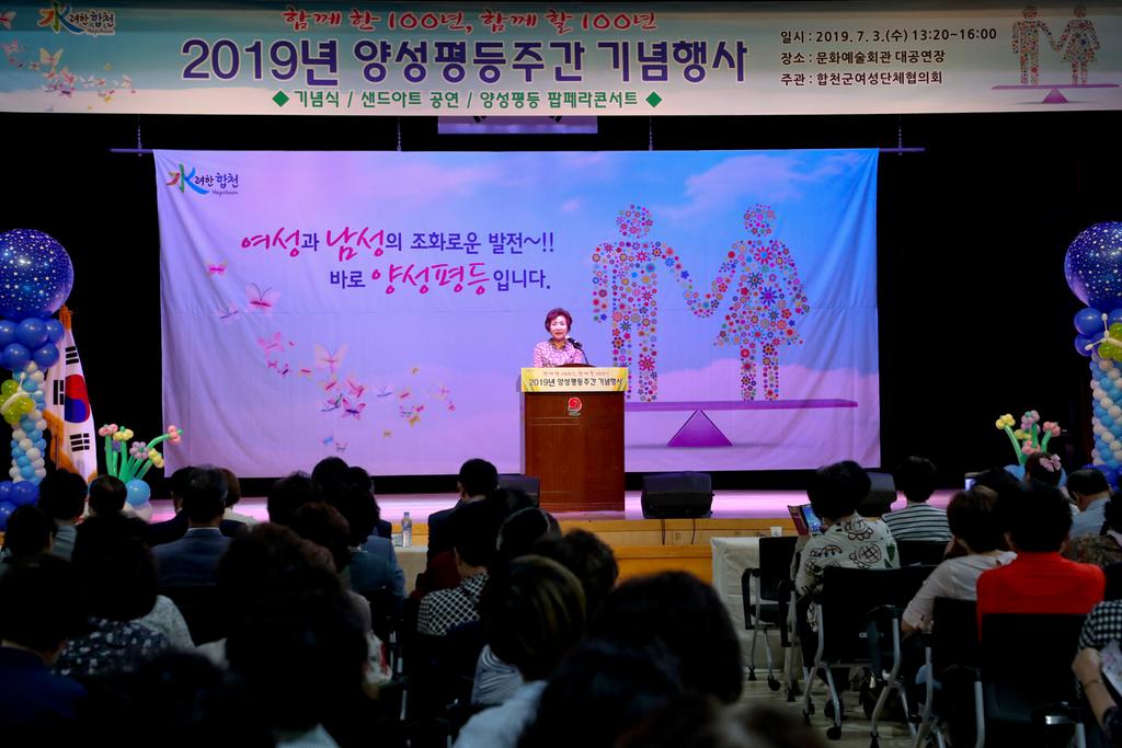 합천군(군수 문준희)은 양성평등주간(매년 7.1.~7.7.)을 맞이하여 지난 3일 문화예술회관 대공연장에서 합천군여성단체협의회 주관으로, 여성단체 회원, 여성 지도자 및 군민 350여명이 참석한 가운데 ‘2019년 양성평등주간 기념행사’를 개최했다.