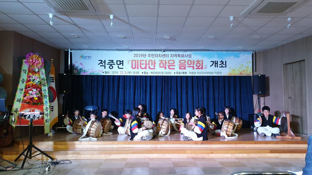 정문식 주민자치위원장은 “이번 음악회는 상대적으로 문화적 혜택을 받기 어려운 우리 지역 주민들에게 문화예술 체험의 기회를 제공하고자 마련했다.”며, “지난 한 해 동안 적중면 주민자치위원회에 보내주는 성원에 대해 이 자리를 빌려 감사드리고, 앞으로도 많은 격려 해주시길 바란다”고 전했다.