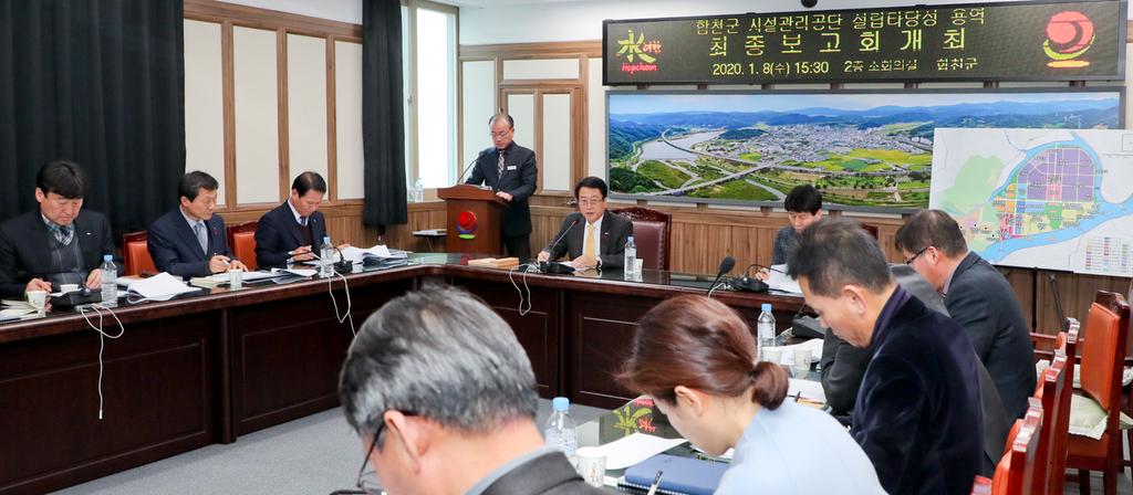 합천군(군수 문준희)은 8일 군청 소회의실에서 문준희 군수, 이상헌 부군수, 간부공무원이 참석한 가운데 ‘합천군 시설관리 공단 설립’ 사전타당성 검토용역 최종보고회를 개최했다고 밝혔다.