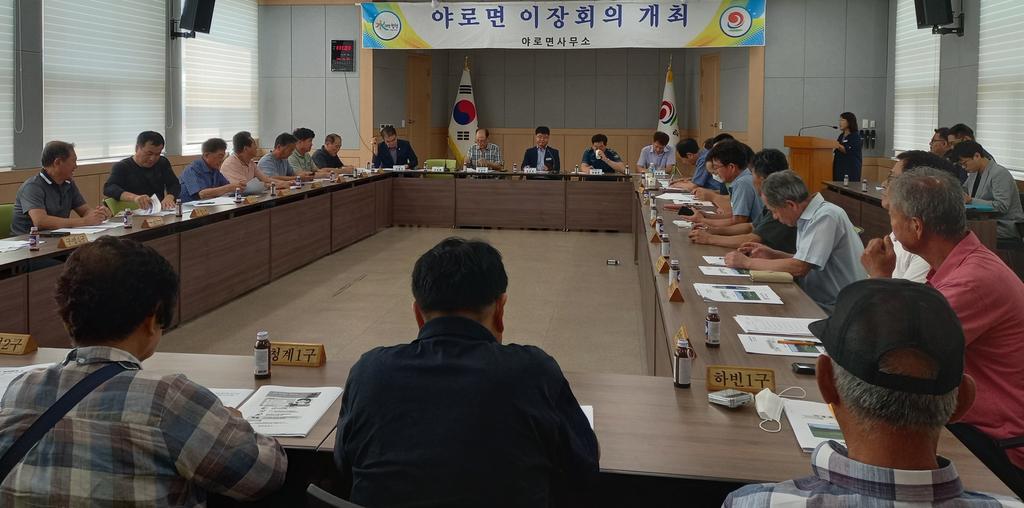합천군 야로면(면장 김주보)은 22일 면사무소 2층 회의실에서 이장단을 포함해 신명기 군의원, 유관 기관장 등 40여명이 참석한 가운데 이장회의를 개최했다.