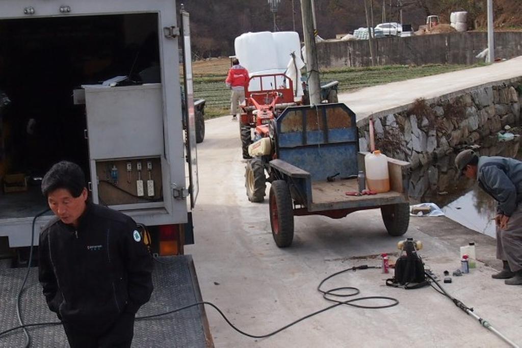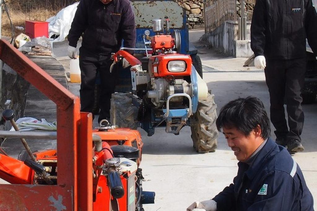 날씨는 영하 3도의 추운 날씨에 농민들을 위하여 각종 농기계 교육과 고장난 농기계를