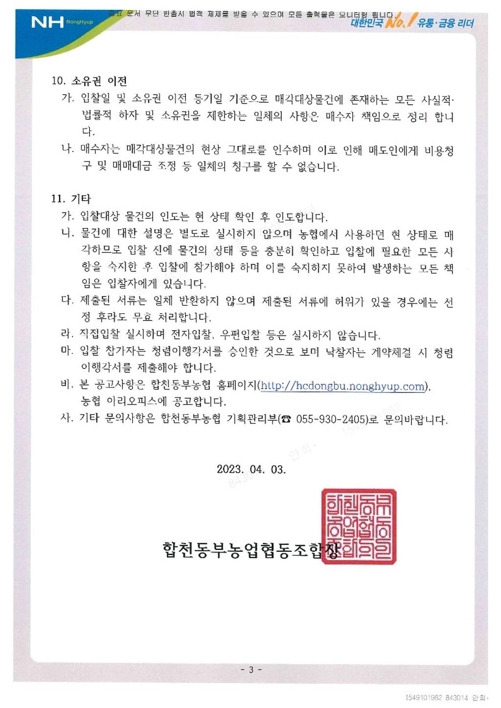 [매매] 합천동부농협 업무용 부동산 매각공고(하남창고) - 2차