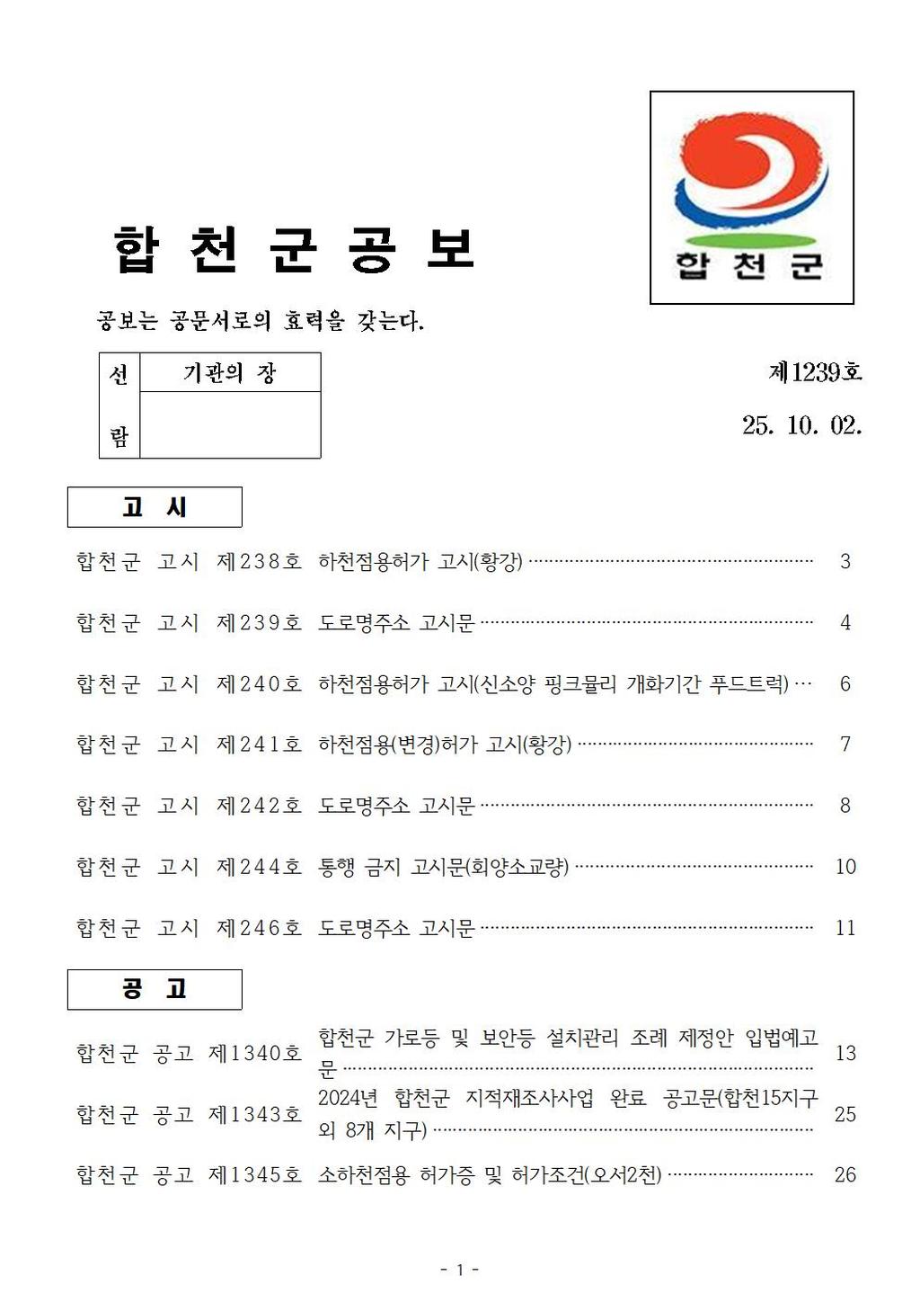 •   합천군 공보 제1238호