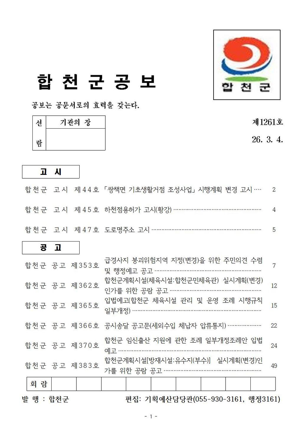 •   합천군 공보 제1261호