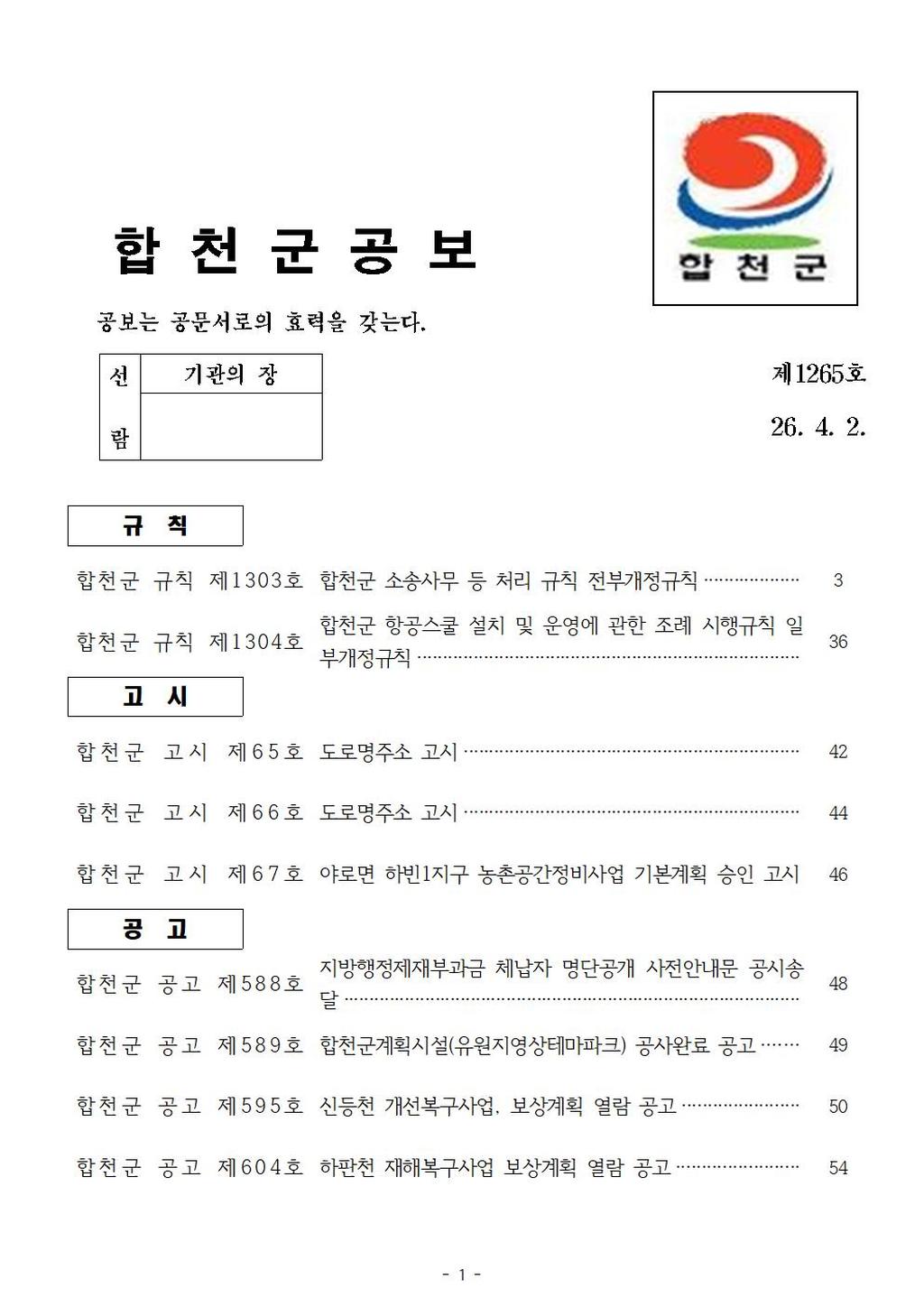 •   합천군 공보 제1265호