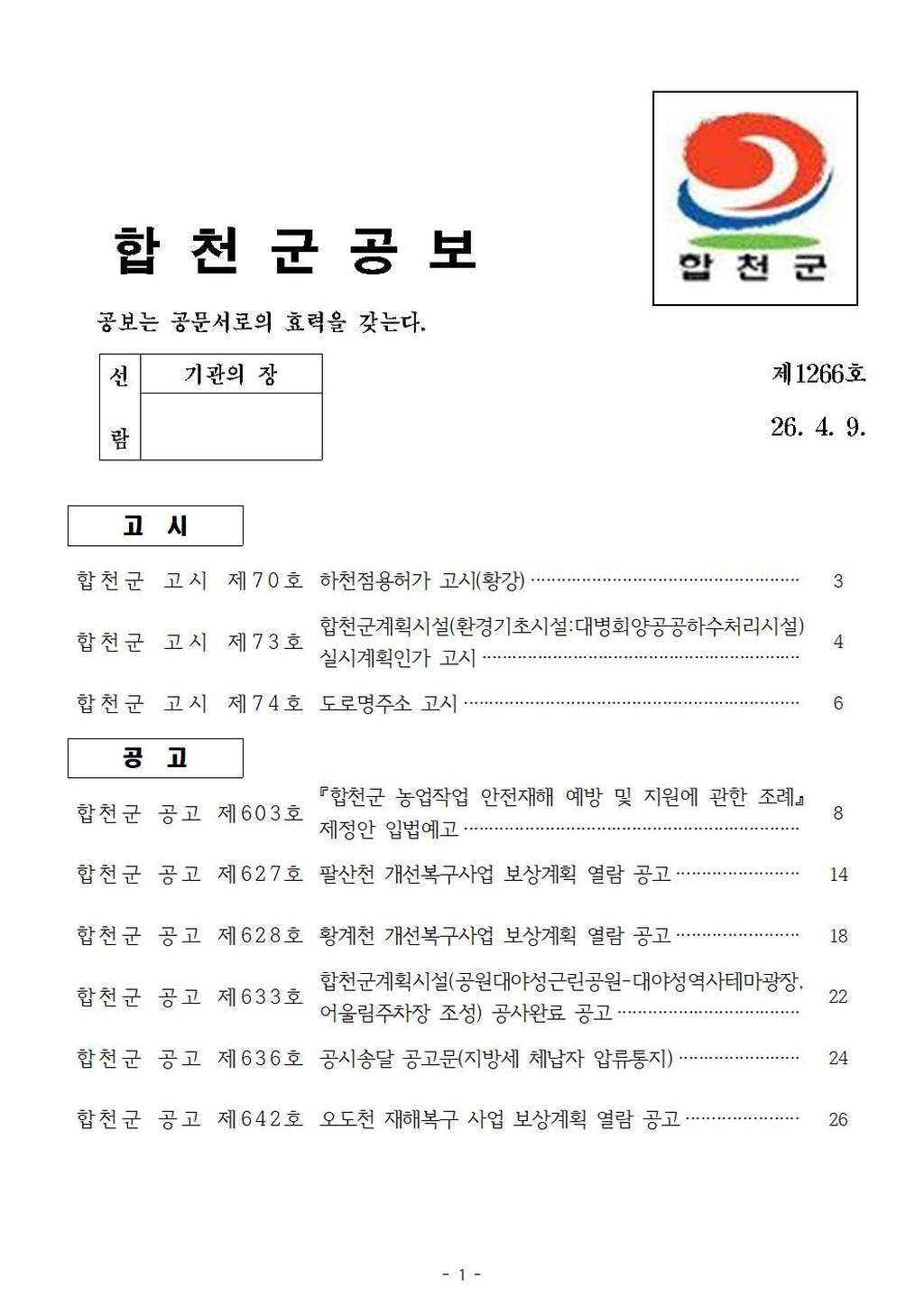 •   합천군 공보 제1266호