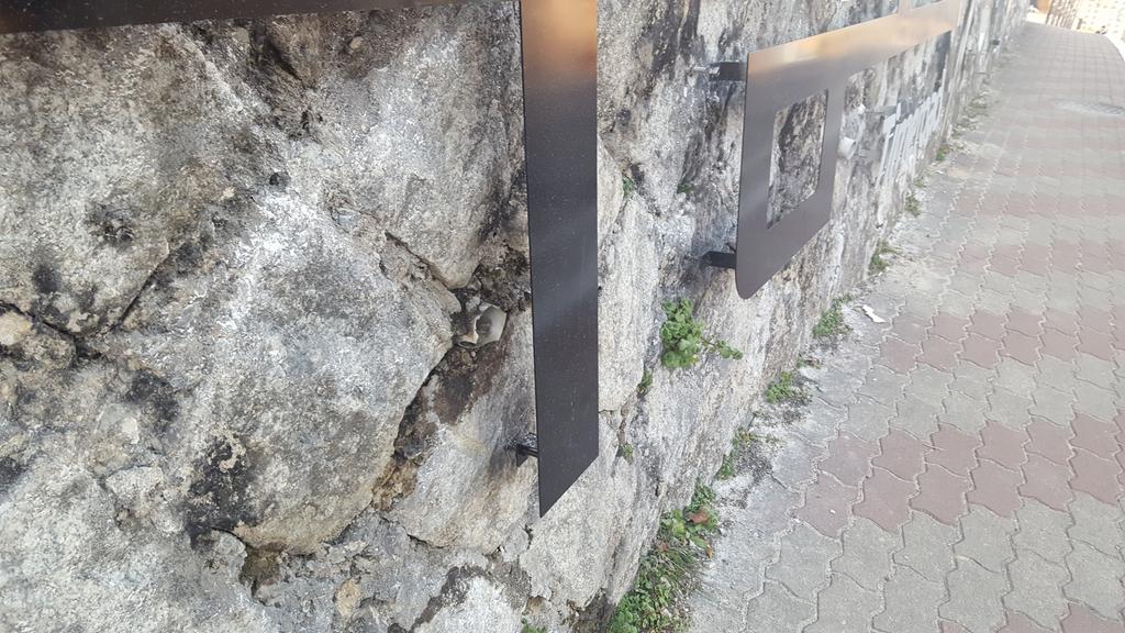 쇠로 된 모서리가 무척 날카롭고, 만졌을 때 거칠거칠한 조형물이 아이들의 눈높이에 설치되어있어