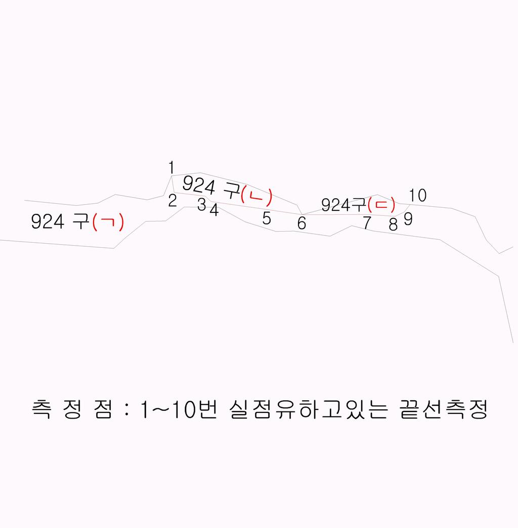2016.1.19.자로 합천군청에서 한국국토정보공사 합천지사에 의뢰한 지적측량결과 또한 924번지(구거)를 성림농장이 침범하여 사용하고 있는 것으로 확인되었습니다.