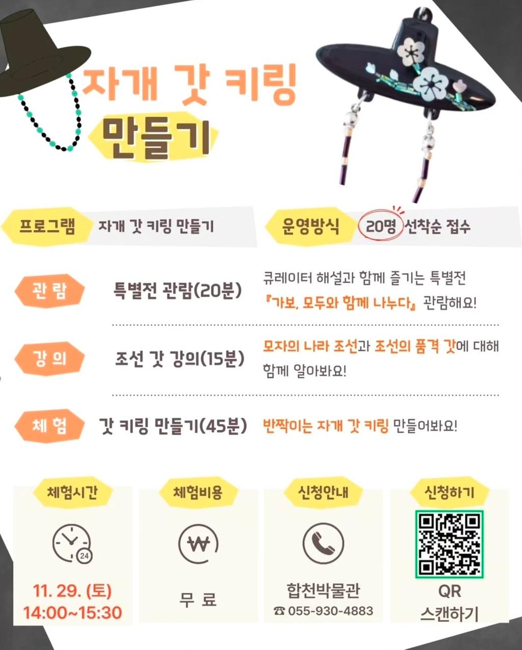 5. 주요내용 : 특별기획전 관람, 갓 관련 이론강의, 갓키링 만들기 체험
