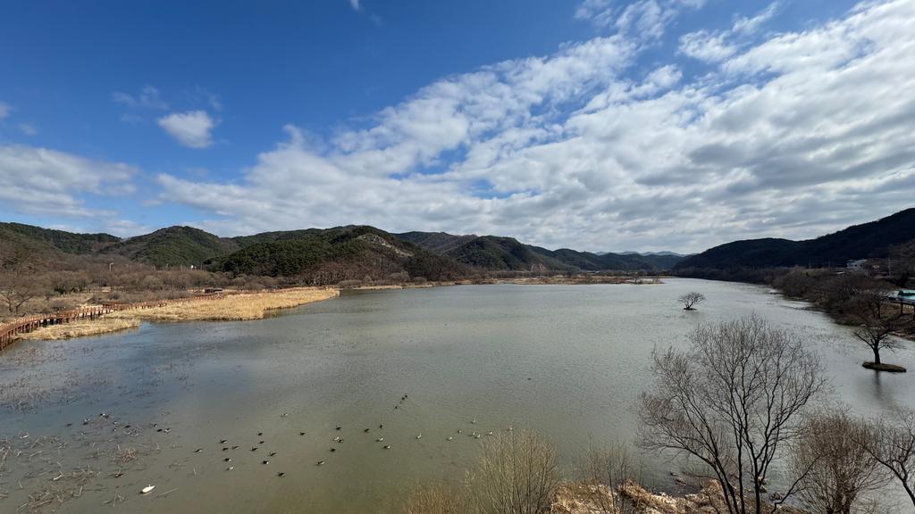 그리고 넓적부리가 먹이를 먹기위해 연신 부리로 물속을 훑었다. 빠르게 움직이는 그 움직임은 소란과 무관하게 지금 이 순간에만 집중하는 모습을 보여주었다. 물 위를 유영하는 청둥오리들은 서로의 거리를 조절하며 부드러운 물살 자국을 남겼고, 그 자국은 지나간 계절들이 남긴 편지처럼 잔잔하게 퍼져 나갔다. 깃털 하나가 물결 위에 떠 있는 장면, 갈대가 바람에 스치는 소리, 물방울이 잎사귀에서 떨어지는 소리까지 모두가 한데 어우러져 작은 합창을 이루었다.