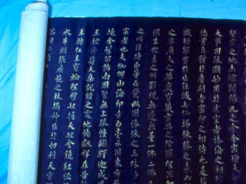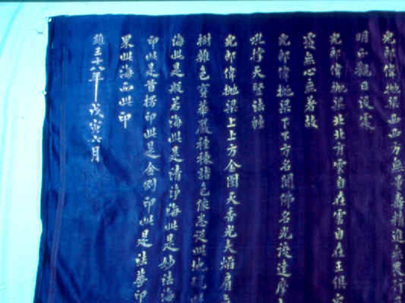 이 상량문은 1971년 대적광전 보수 때 발견되었으며, 그 원본은 꺼내어 해인사 성보박물관에 보관하고 이를 그대로 쓴 모본과 보수기(補修記)를 그 자리에 넣었다. 감색 비단에 금니로 쓰여진 해서체의 글씨로 추사 초년의 대표작이다. 비단의 크기는 세로 95㎝, 가로 483㎝이다. 글자 크기는 세로 4.1㎝, 가로 3.5㎝로 상태는 비교적 양호하고 중간 중간 금니자(金泥字)가 탈락된 부분이 있다. 전체의 글은 총 67줄로 한 줄에 20자이다.