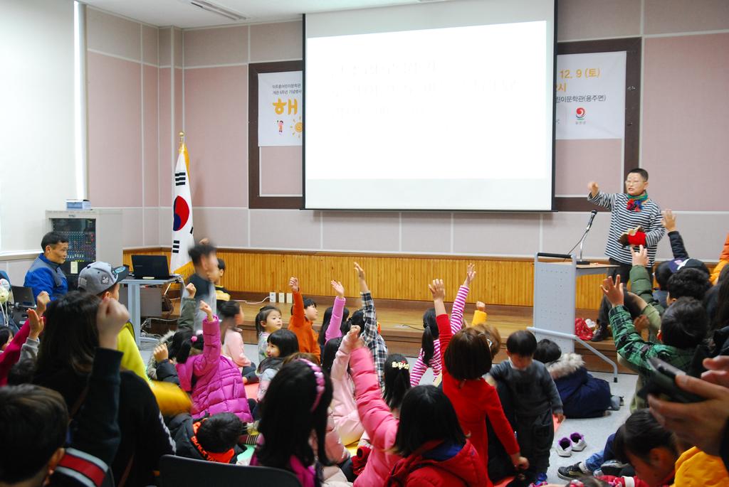 이날 행사에는 하창환 군수님을 비롯해 180여명의 어린이와 부모님이 참석해 다양한 행사를 즐겼습니다. 합천청소년오케스트라의 축하 연주를 시작으로 유명 아동문학가 소중애선생님의 ‘옛이야기로 배우기’ 강연, 호빵아저씨의 ‘늑대아저씨와 크리스마스 ’인형극이 진행되었습니다. 그 외에도 내년의 소원을 적는 코너와 판박이 스티커 붙이기, 동시컬러링 엽서 만들기, 필사하기 등 부대행사들이 마련되어 가족단위로 문학관을 찾은 이들이 즐거운 시간을 보냈습니다.