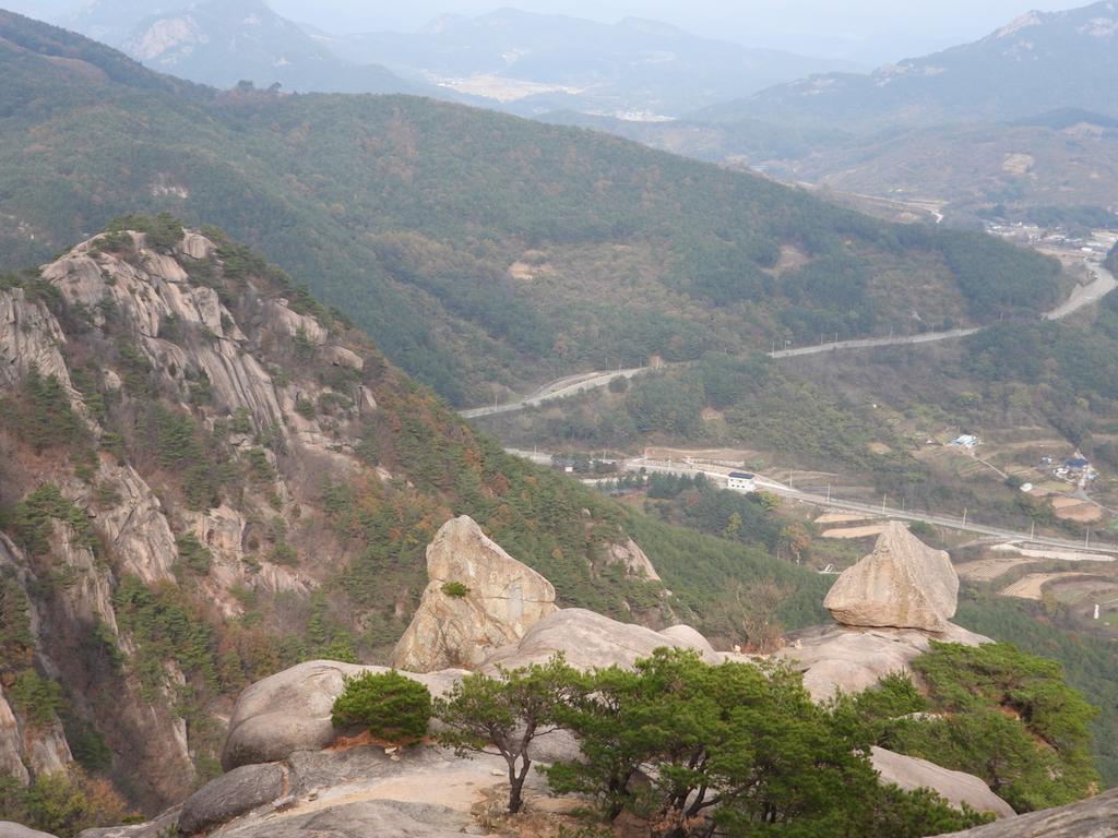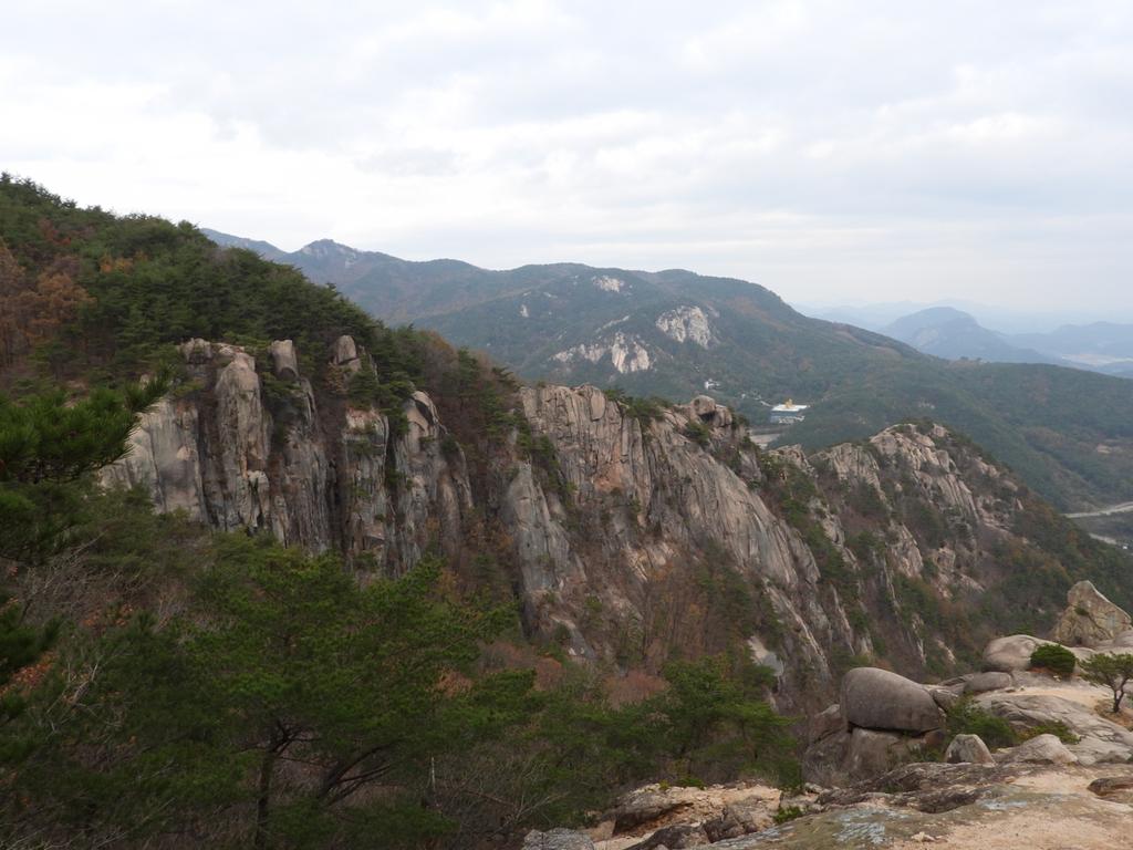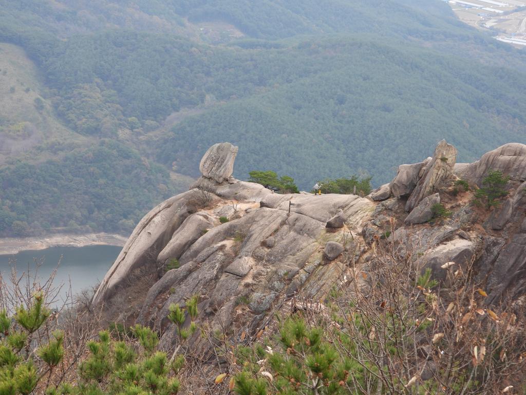 깍아지른 듯한 바위절벽과 그위에 얹힌 바위는 절경입니다.
