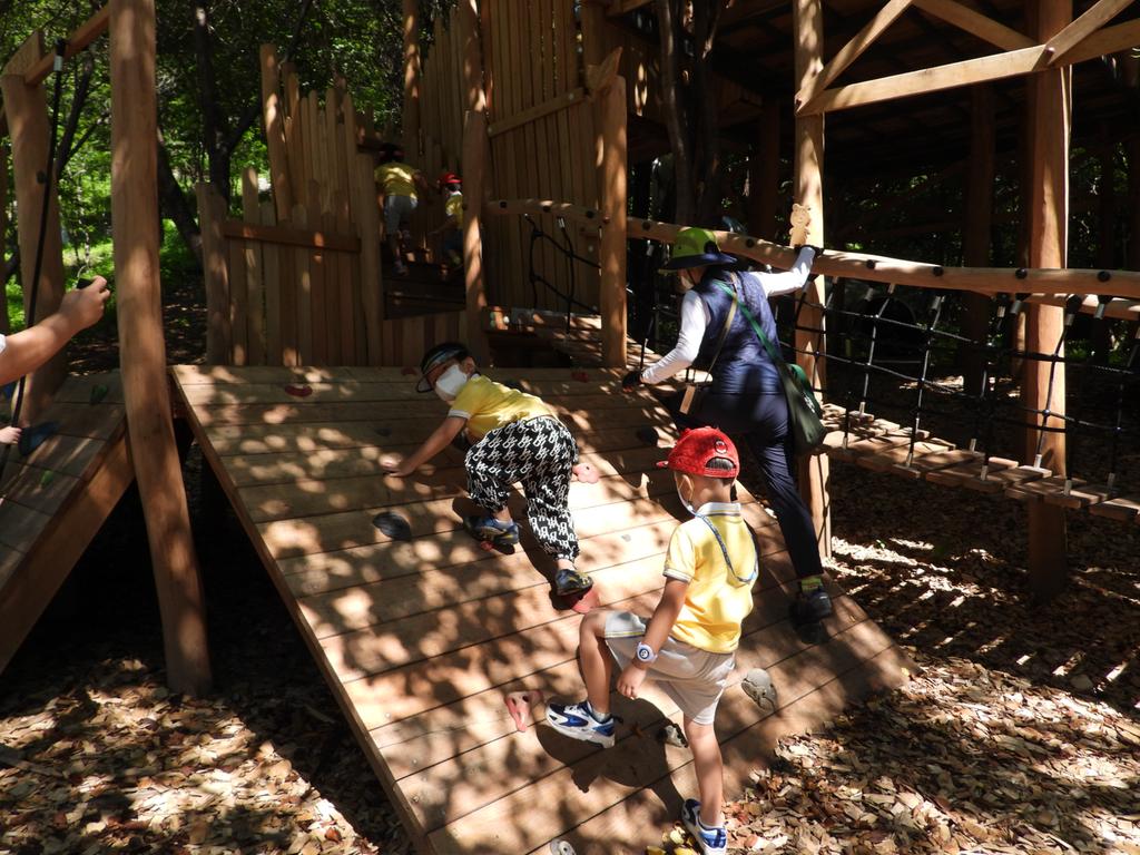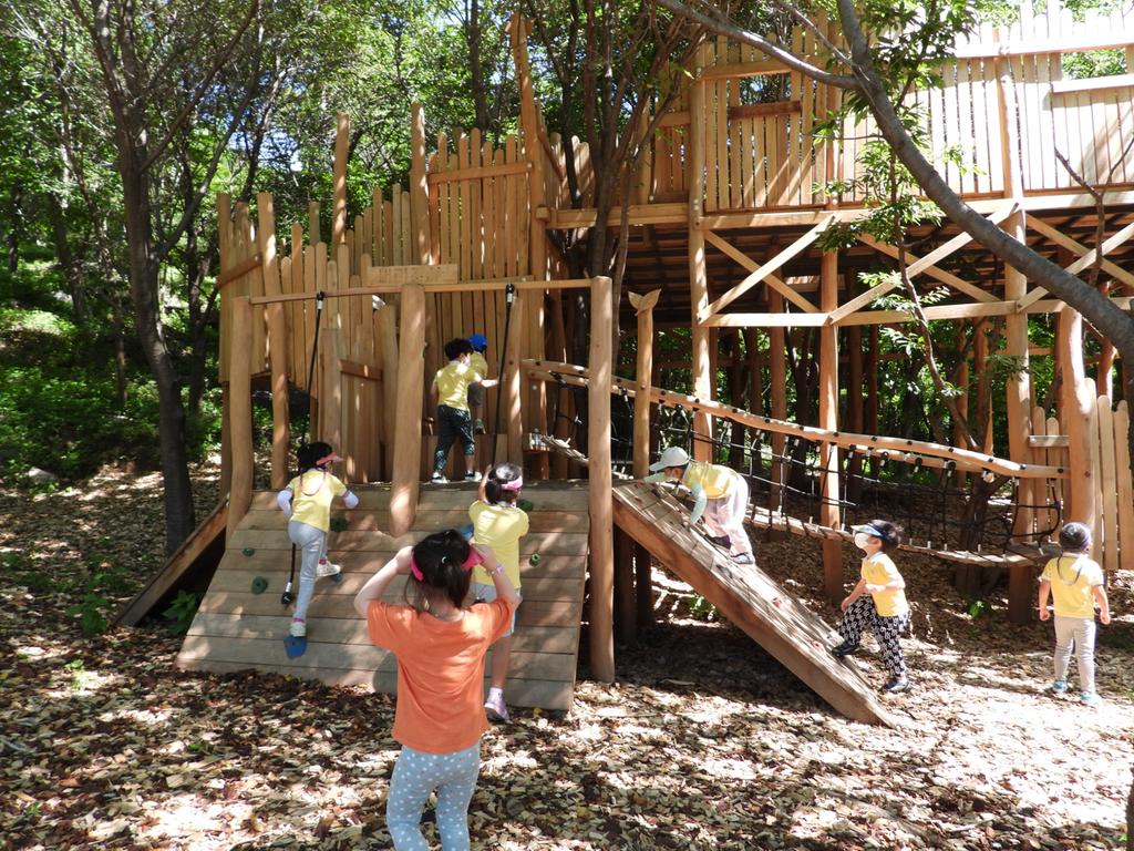 - 나무놀이터에서 미끄럼틀도 타고 신나게 놀기