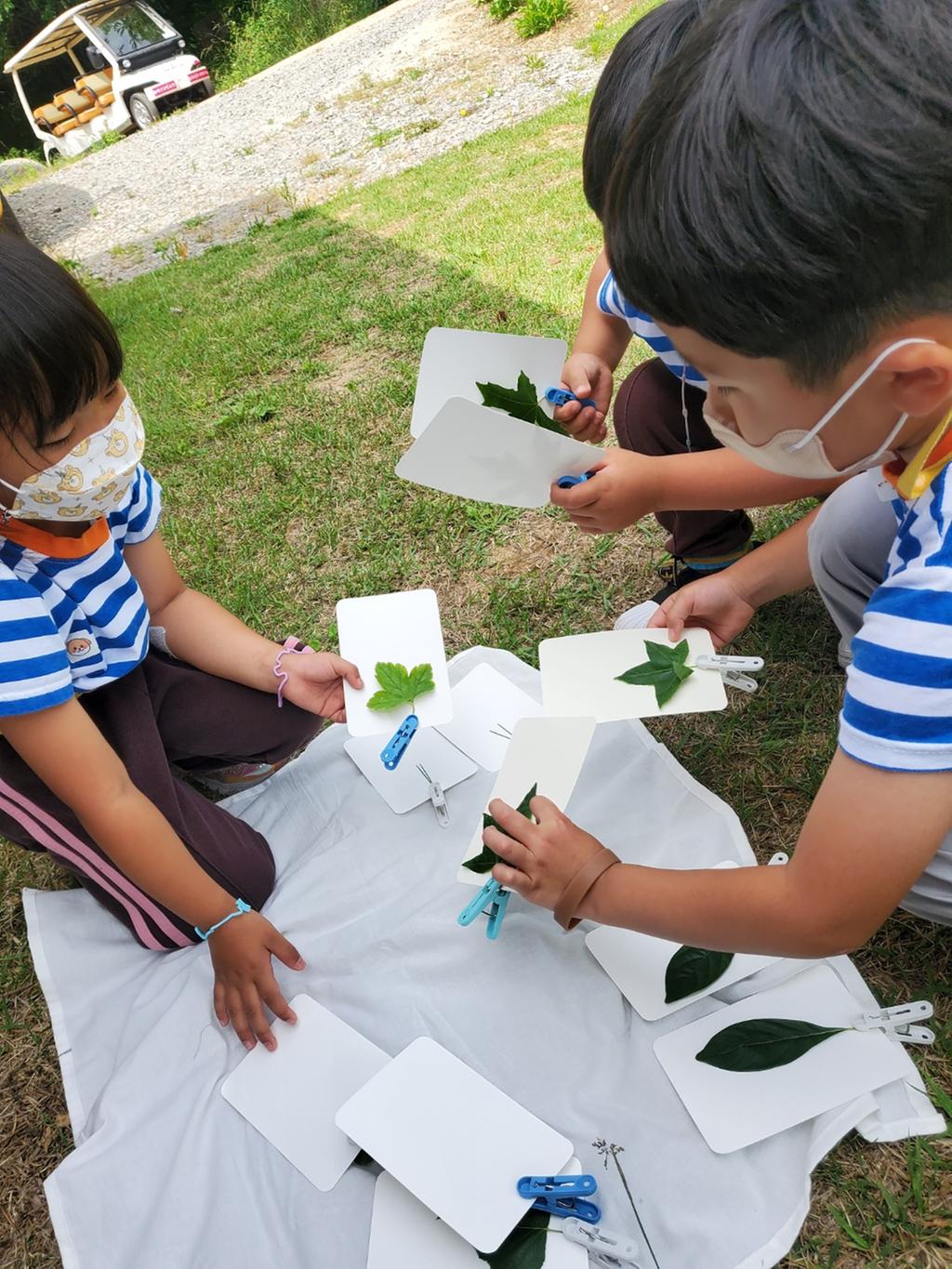 같은 모양 나뭇잎 찾기도 해보았어요.