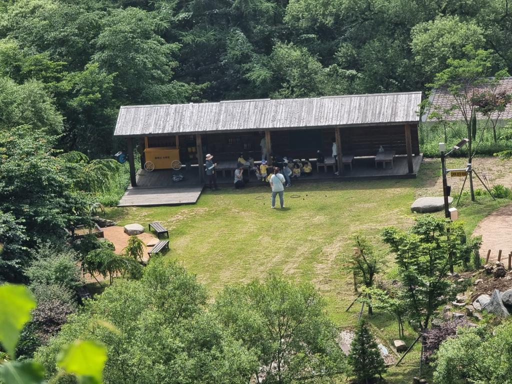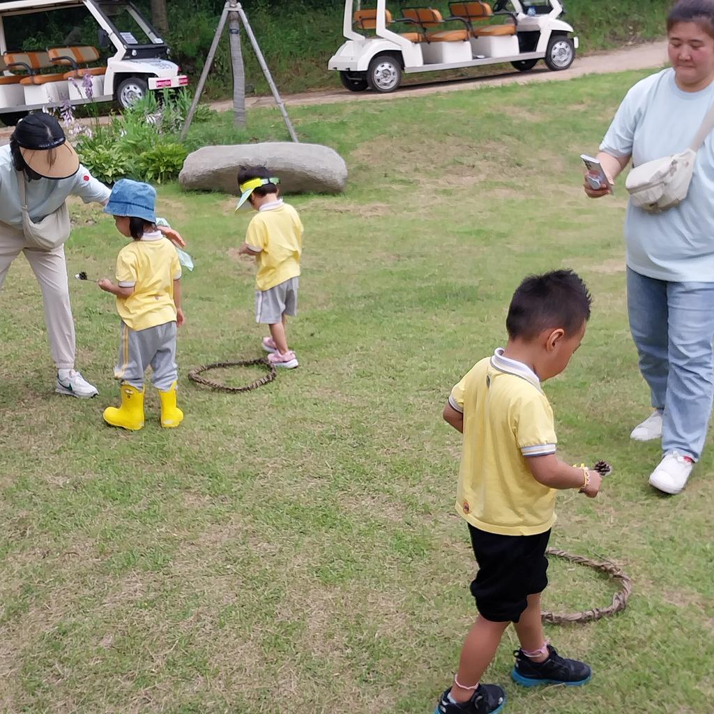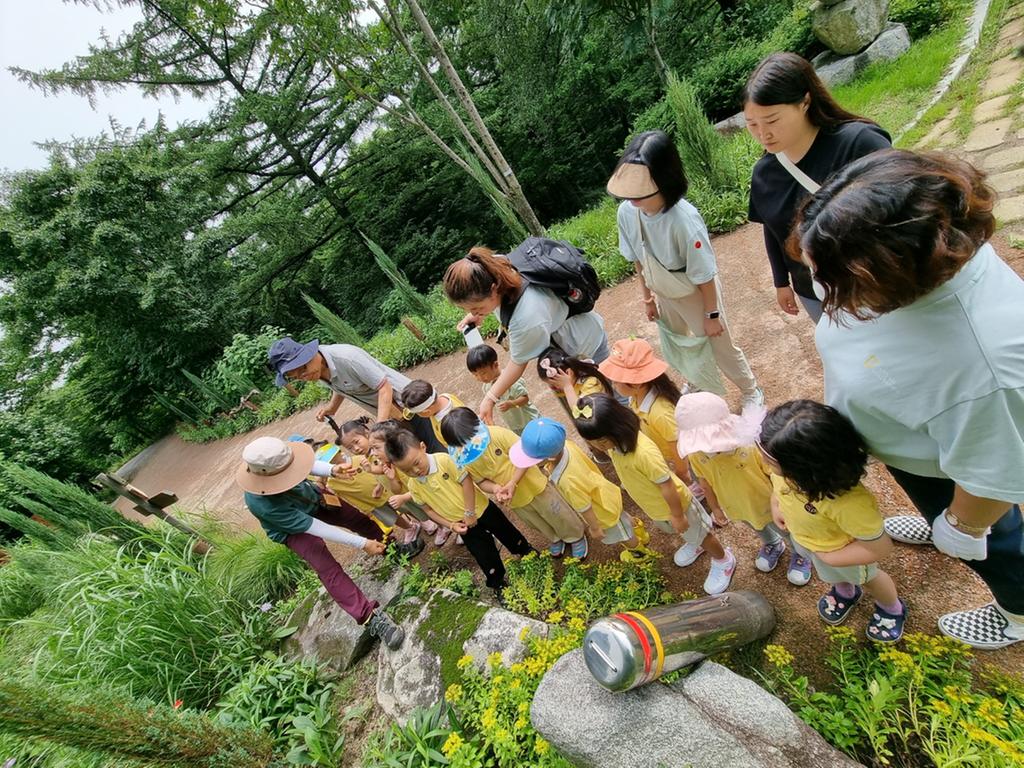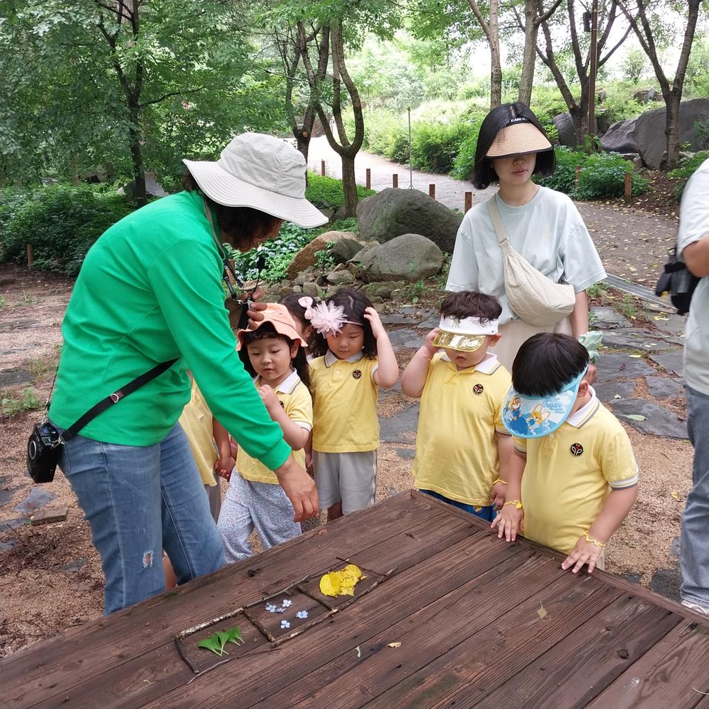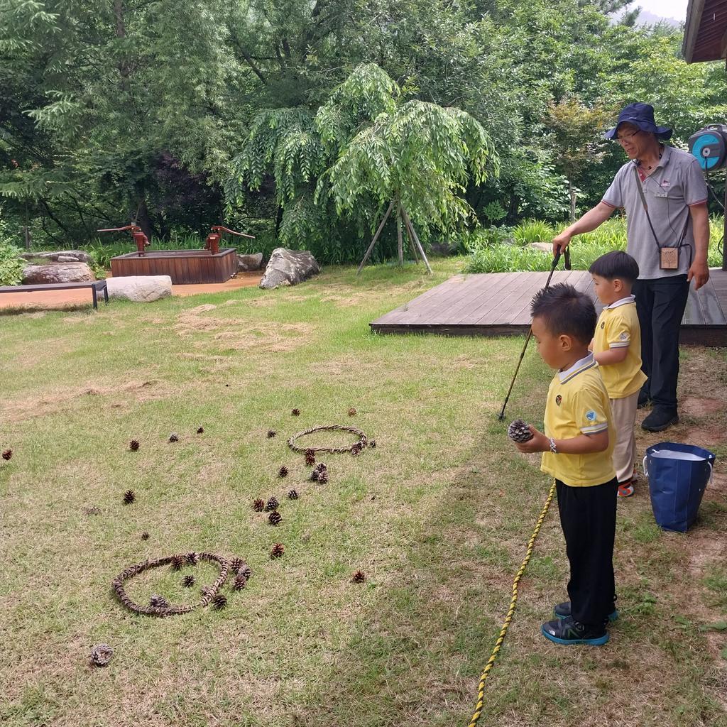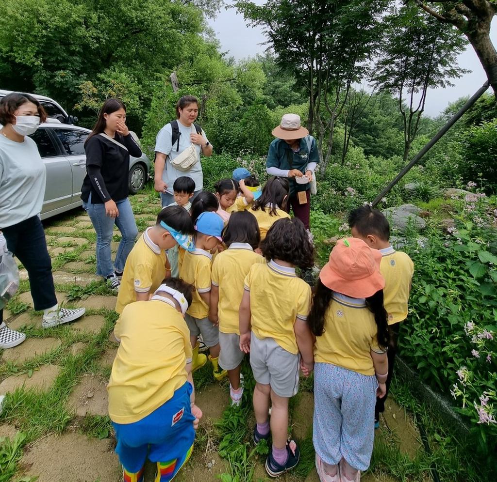 다행히 비가 그쳐 귀여운 5세 어린이들이 수목원에 왔습니다.