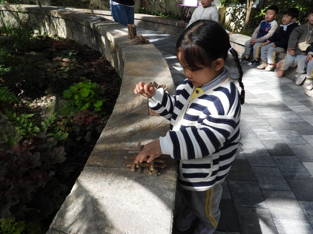 풀이 마르는 동안 두팀으로 나눠 나무가지 탑쌓기를 했어요.