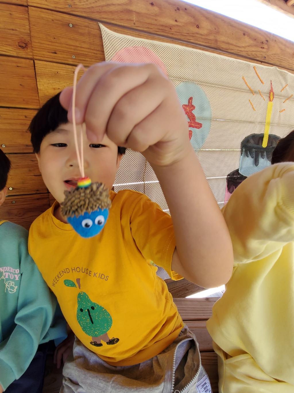 만들기외에도 솔방울등 자연물로 팀별 놀이도 하며 즐거워 했어요.